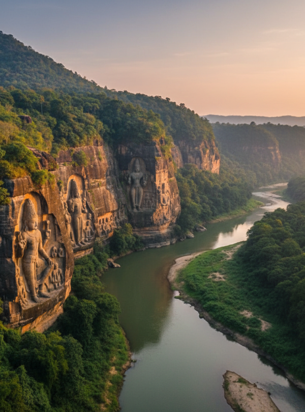 Then visit Unakoti, an archaeological marvel where gigantic bas-reliefs of Hindu deities are etched into rock faces, said to number a million.